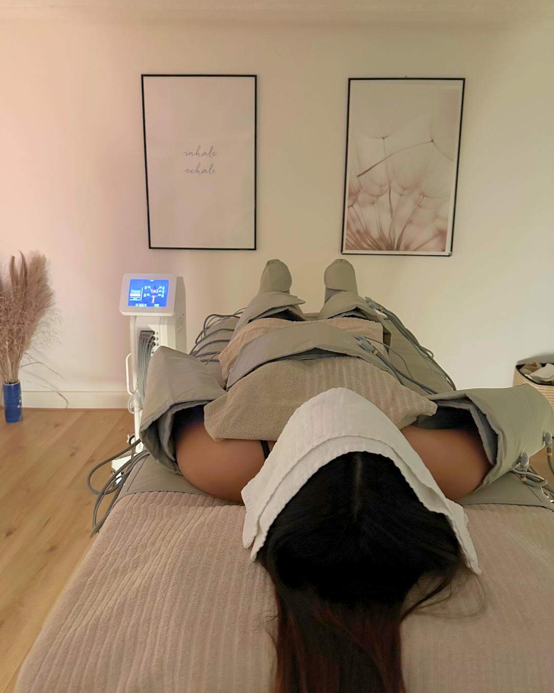 Lymphatic drainage through air-pressure massage that reduces swelling, boosts circulation, and relaxes.